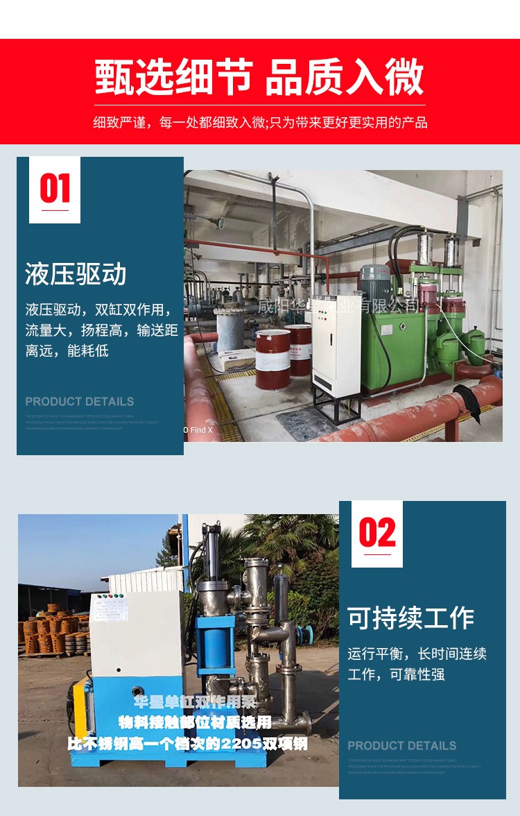 2、自吸能力強(qiáng):柱塞式抽真空方式,自吸能力4-8米(物料比重決定吸程變化)
